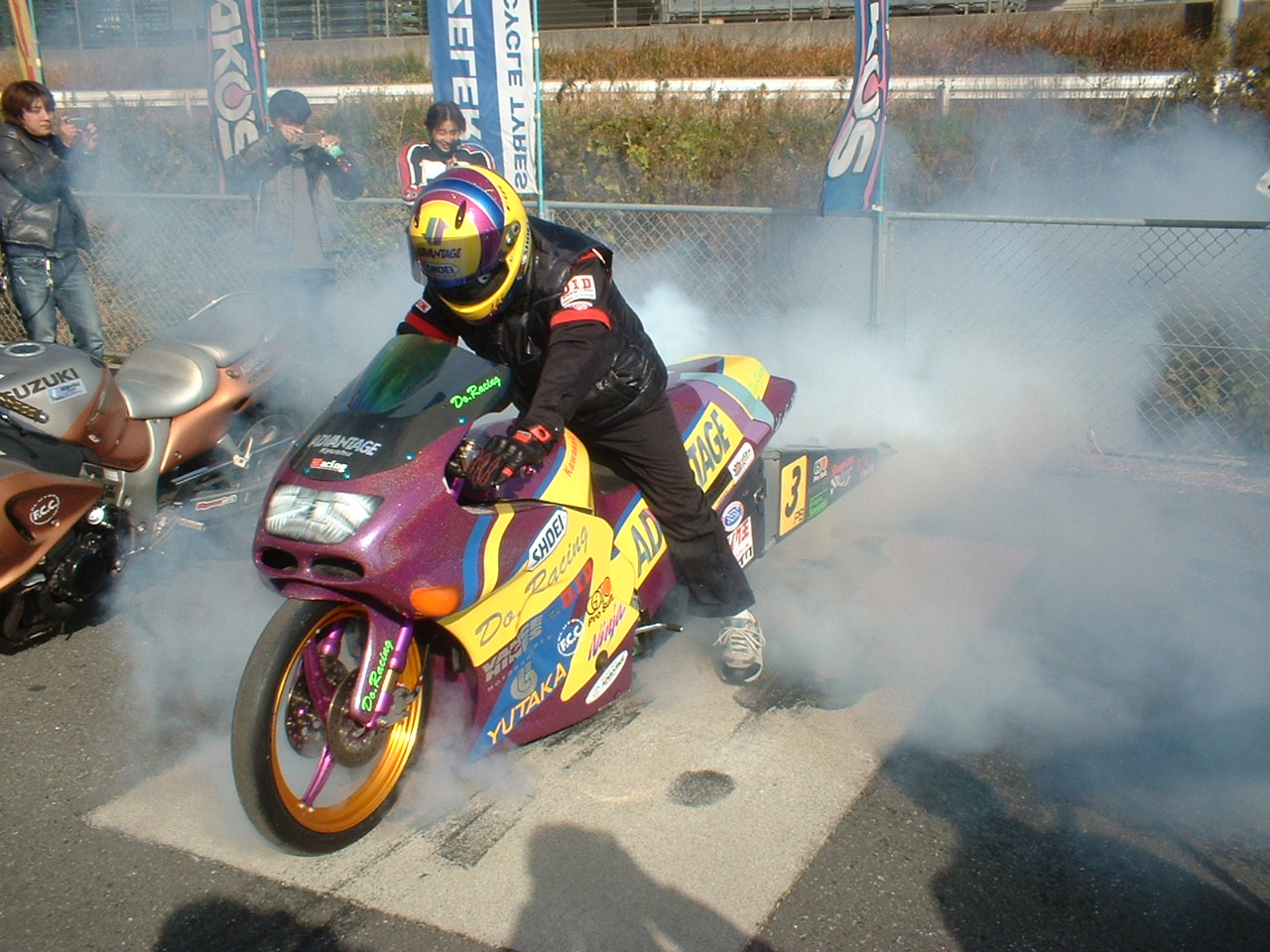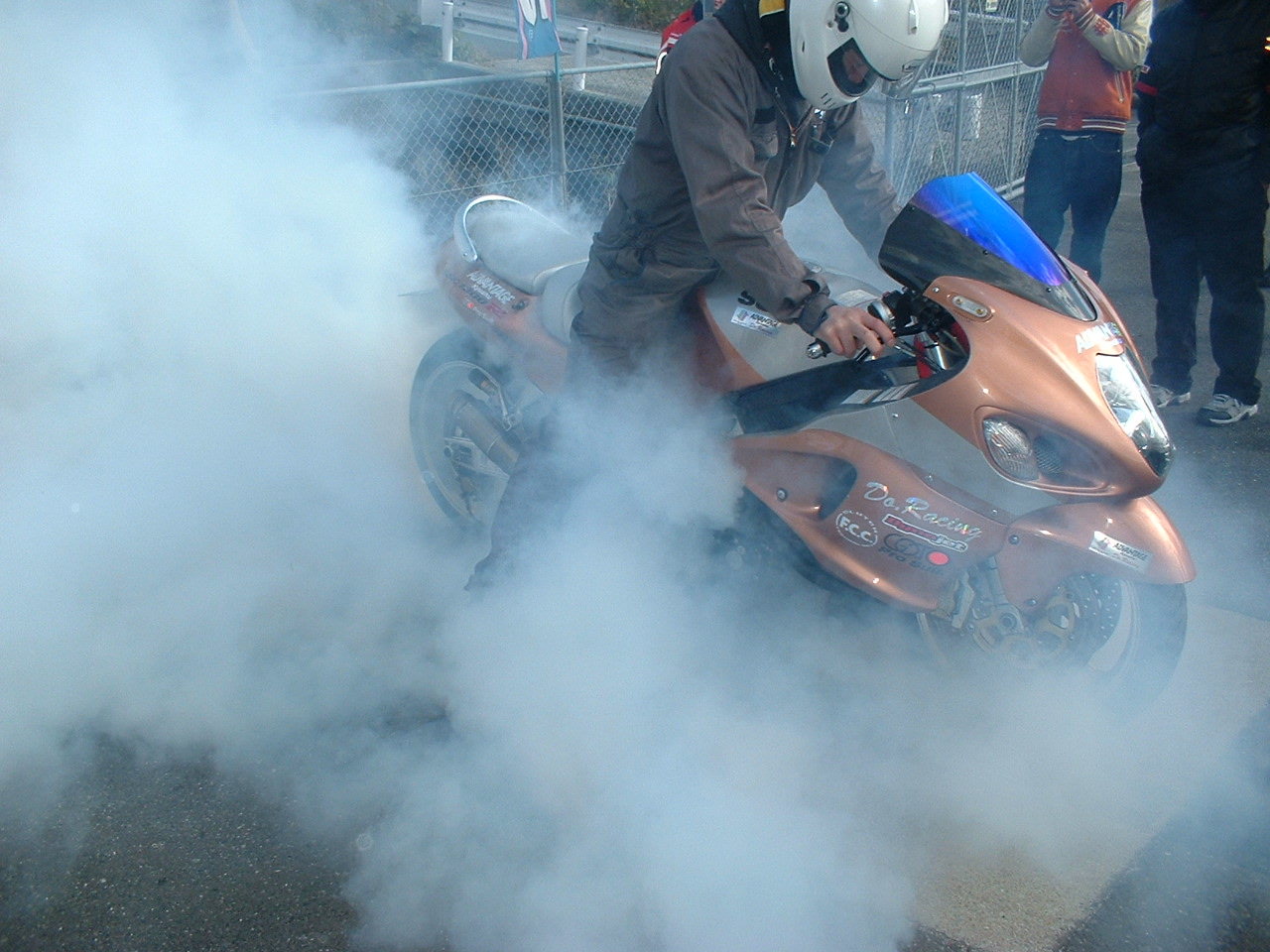 子供達もバイクのバーンナウトは初めてみたんでビックリしてました
