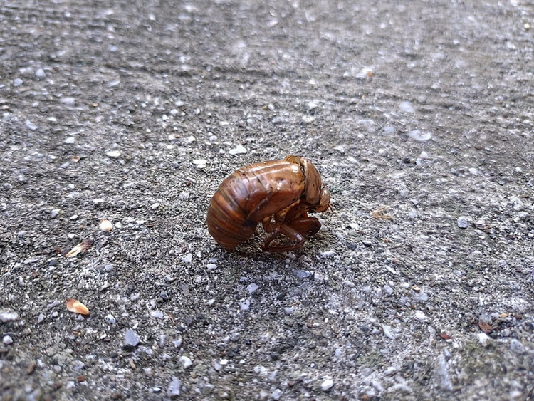 朝早く、セミの抜け殻を庭で見つけました。